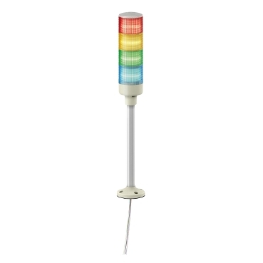 This product is part of the Easy Harmony XVG range, an offer of ? 60mm monolithic tower lights. It is a complete pre-wired and pre-assembled monolithic tower light. It comes with red, amber, green and blue steady light. It offers configurable color combinations and has a base with an integrated buzzer. This tower light has a 24V AC/DC rating. This tower light has a sound rating of 85 dB. It has an aluminum tube and weighs 0.41 kg. It is an IP42 rated product and comes with CE and EAC certification. It has a fixing plate attached to the tube and has a pre-assembled cable for easy installation. It provides a more reliable and clear view due to the clear lens. This range offers wide range of voltage selection and flexible mounting options with visual and audible functions.